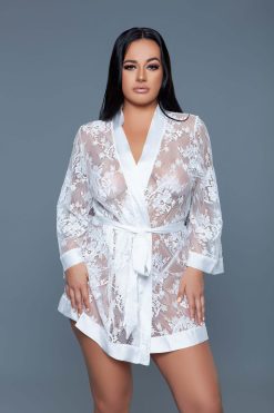 2275 Delia Robe Floral Lace Robe with Satin Trimming