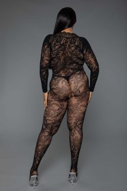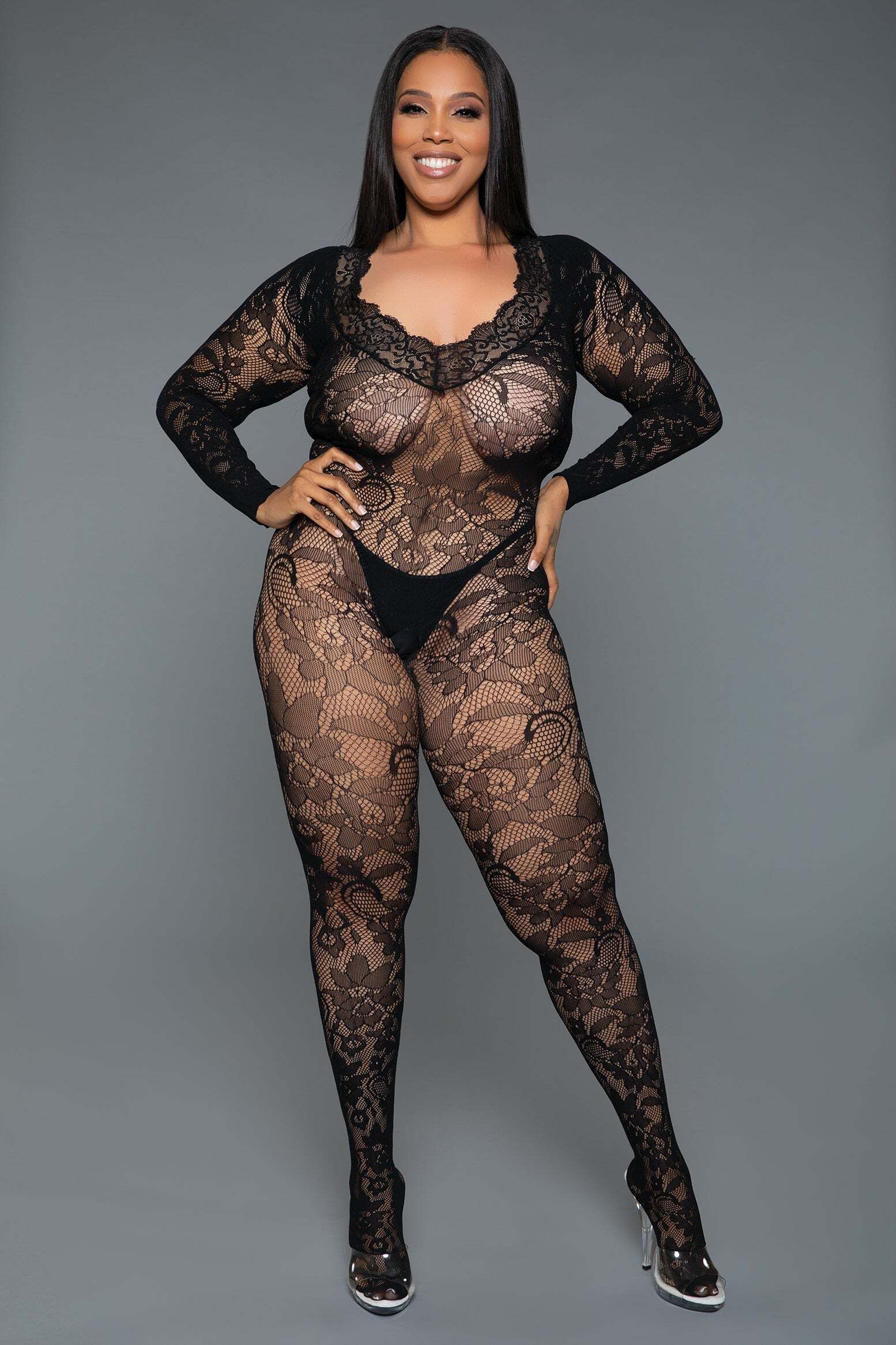 Turn heads with this striking Secret Poison Bodystocking catsuit Designed with a luxurious lace texture, it features a scalloped deep V-neckline that exudes elegance and allure The intricate floral pattern enhances its sophisticated appeal, while the fitted silhouette embraces your curves for a stunning, confident look Sexy allover floral lace Scalloped plunging v-neckline Long sleeves Comfy stretchy material that hugs the figure Crotchless bottom Thong and pasties not included Handwash only, wash separately Do not bleach/tumble dry/iron/dry clean Be Wicked box packaging 93% N Polyamide 7% Elastane