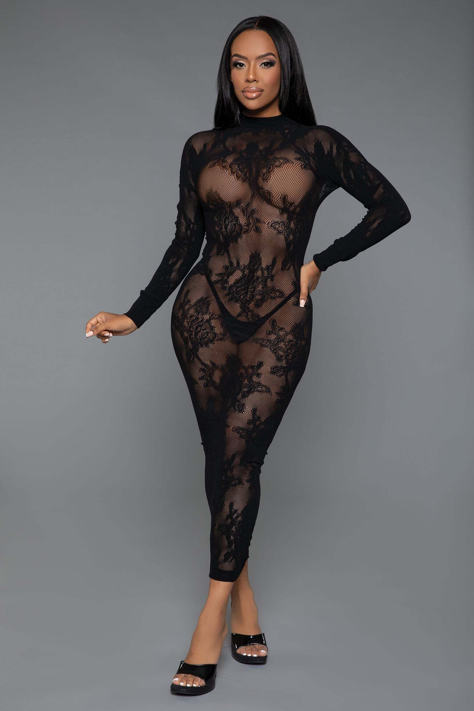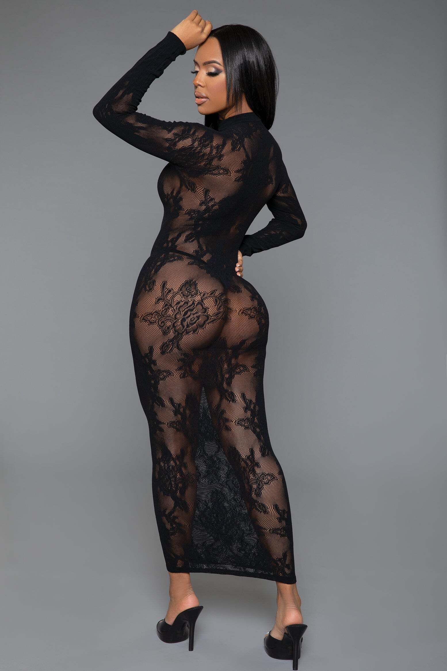 Step into the Innocent Touch Lace Maxi Dress Bodystocking and experience luxury, comfort, and style It’s not just an undergarment, it’s a fashion statement that celebrates the beauty of lace and the power of a well-crafted silhouette The delicate sheer floral lace shows what lies beneath creating a sensual yet elegant look Mock neck Long sleeves Bodycon bodice Thong and pasties not included Handwash only, wash separately Do not bleach/tumble dry/iron/dry clean Be Wicked box packaging 93% Polyamide 7% Elastane Made in Taiwan