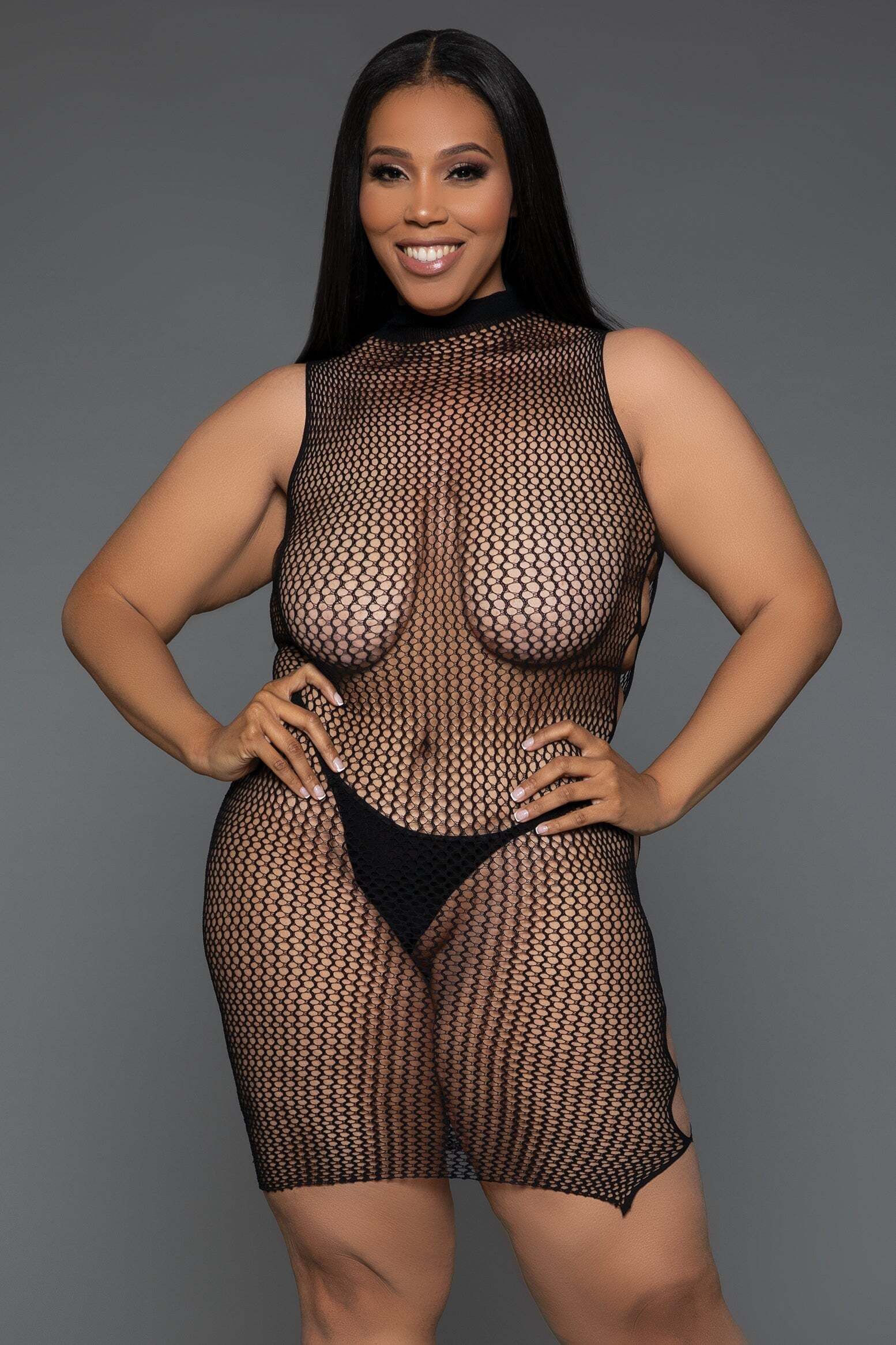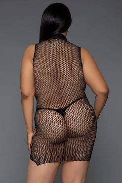 The Come Over Here Minidress bodystocking is the epitome of daring sensuality This dress features a cutout design on the side and an open-stitch bodice showing what’s beneath Mock neckline Sleeveless Side cut-out design Side slit Thong and pasties not included Handwash only Do not bleach/tumble dry/iron/dry clean Be Wicked box packaging Made in Taiwan